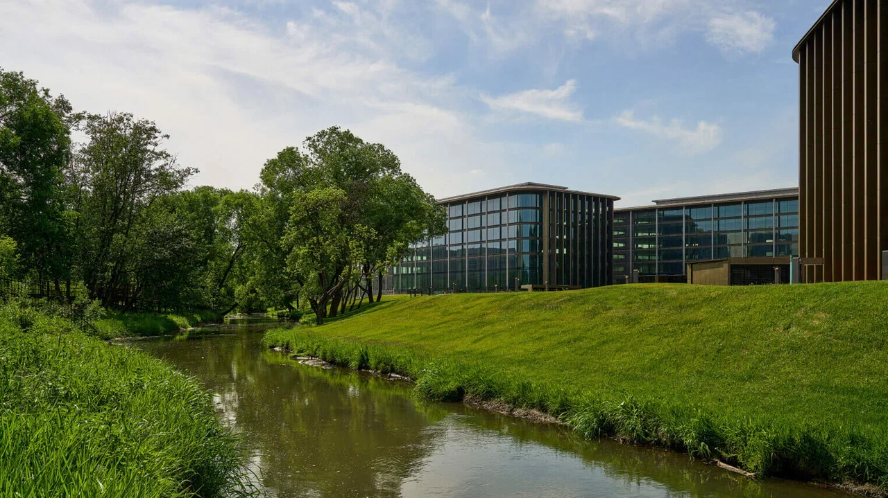 Деловой квартал «Сколково парк» находится в окружении парка, озера и набережной реки Сетунь, рядом нет промышленных предприятий, что позволяет сотрудникам не только любоваться пейзажами из окна, но и в любое время на работе иметь возможность дышать чистым воздухом.