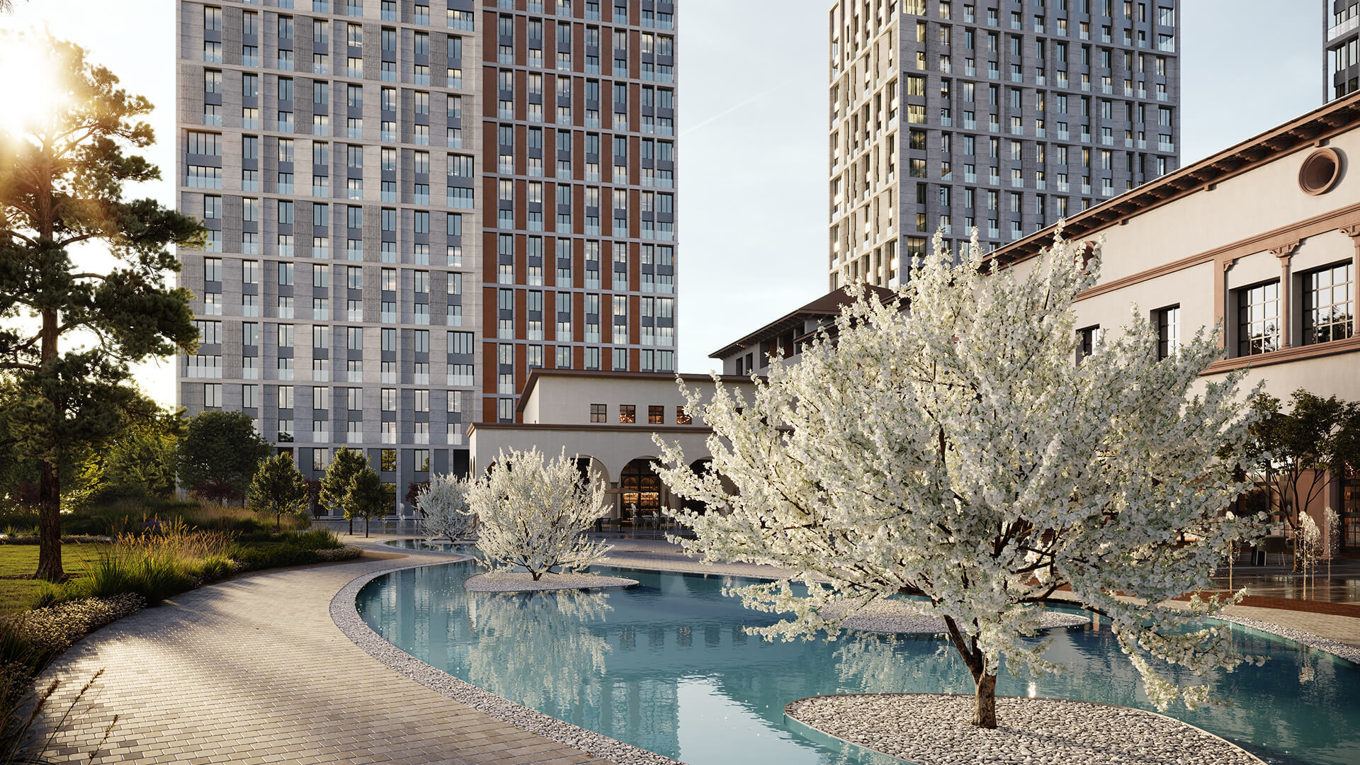 На территории SOUL появится двор с центральной площадью и фонтаном, а также приватные дворы с насыщенным зонированием (детские площадки, релакс-зоны, сенсорный сад и прогулочные террасы). Здесь также откроются два детских сада и объекты ритейла. Для резидентов будут доступны детские игровые комнаты, фитнес-рум, коворкинг, гостиная с кухней и лекторием.
