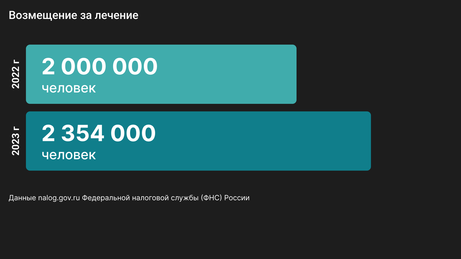 Компании в сфере медицины, образования и спорта ежегодно обрабатывают тысячи запросов на подготовку документов для получения социальных налоговых вычетов. Так, по данным Федеральной налоговой службы (ФНС) России, за 2022 г. возмещение за лечение получили почти два млн человек, а за следующий год – на 17,7% больше, 2,3 млн граждан.