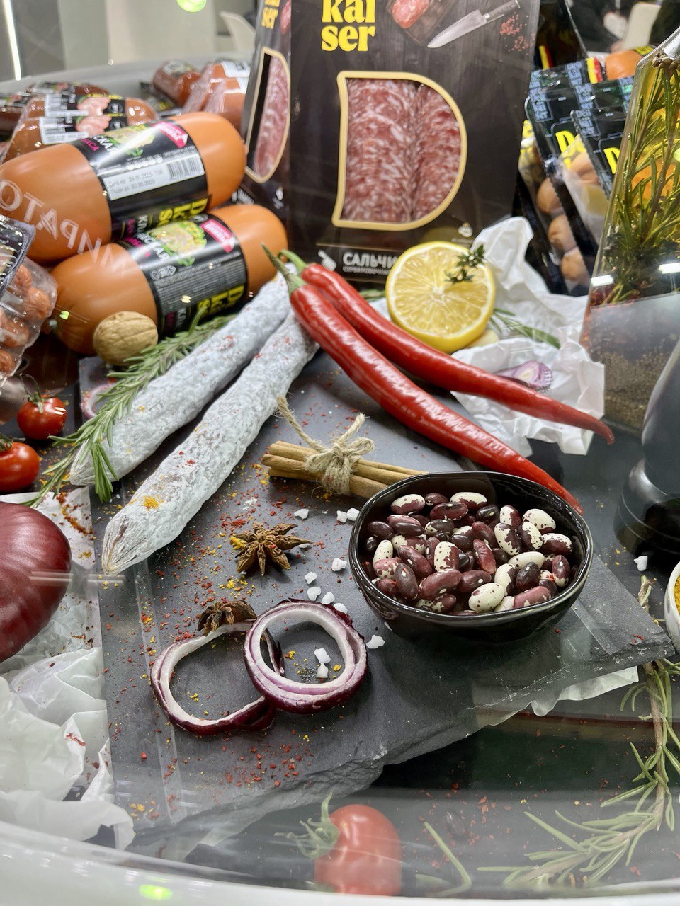 На стенде компании была представлена продукция производства ООО «МПК «Атяшевский» и ООО «МК «Даурский» в категориях «Мясная гастрономия», «Охлажденные и замороженные полуфабрикаты», «Мясные снеки» и корма для животных производства ООО «МПК «Атяшевский» и ООО «Добрый хозяин». Также на стенде были презентованы новые продукты – корма для животных ТМ Kott PRO и Royal Food.