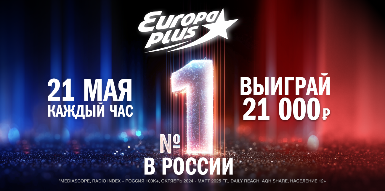 «Европа Плюс» объявляет 21 мая днём №1 и отмечает его вместе со слушателями. Радиостанция подтвердила лидерство в индустрии: согласно актуальным данным исследований Mediascope*, «Европа Плюс» — первая в России по доле рынка по аудитории и узнаваемости, а также радиостанция с самой большой аудиторией. Каждый день к эфиру подключаются свыше 7,3 млн жителей крупных городов старше 12 лет. Сеть вещания «Европы Плюс» включает 370 пунктов установки передатчиков в России и за рубежом. Так, в мае 2025-го стартовало вещание радиостанции в Узбекистане, которое охватывает свыше 2 млн слушателей.