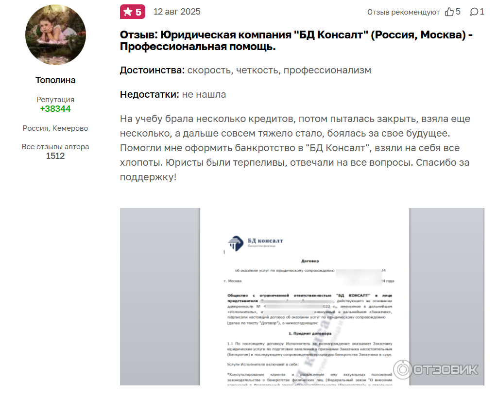 При выборе компании ориентируйтесь не только на цену. Посмотрите её сайт, проверьте, как долго она работает, какие гарантии прописывает в договоре. Обязательно пообщайтесь с юристом на консультации — лично или онлайн. Это поможет понять, готовы ли там вникать в вашу ситуацию.