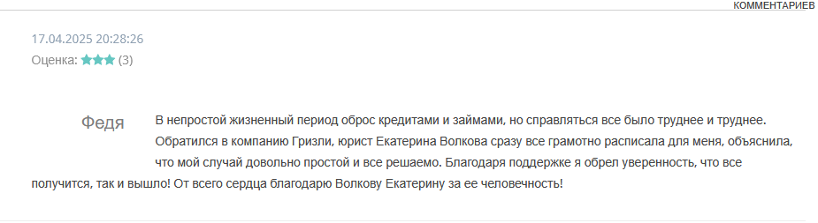 Если хотите обсудить свой случай и понять, что делать дальше, оставьте заявку на бесплатную консультацию с юристом компании «Гризли».