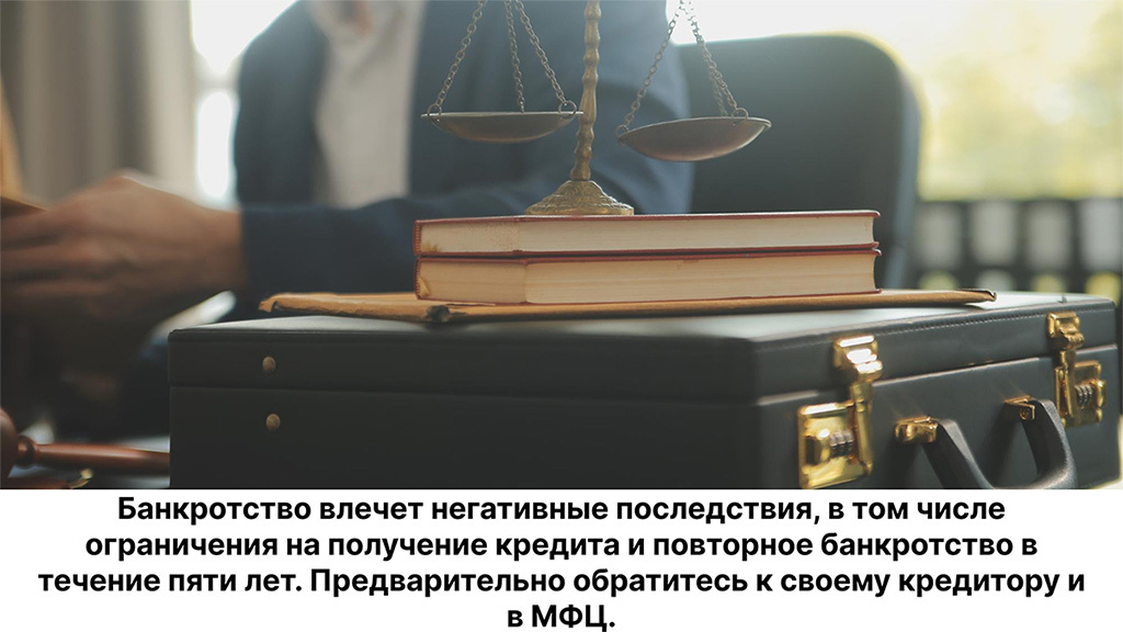 И ещё момент, который многие недооценивают: негативные последствия банкротства всё же есть. После процедуры может быть сложнее получить кредит, а повторно пройти через банкротство получится только спустя пять лет.