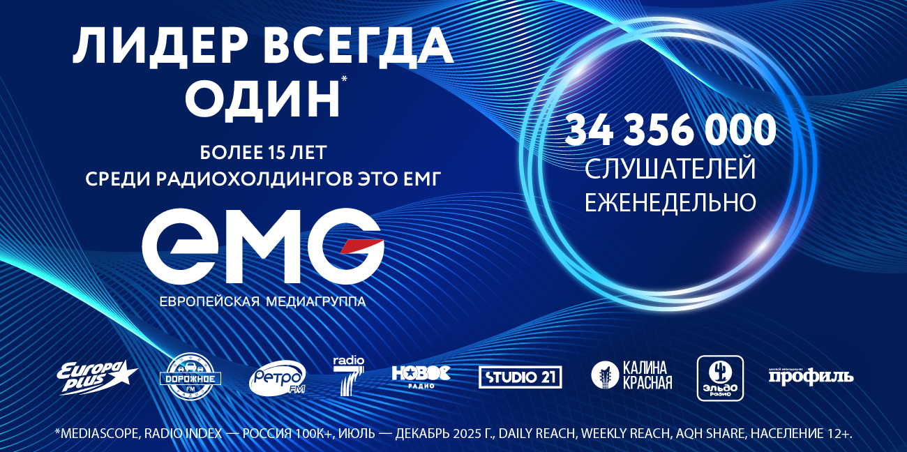 «Европейская медиагруппа» продолжает успешно строить собственную digital-вселенную. Охват контента форматов лидирующего радиохолдинга в социальных медиа в 2025 году вырос на 37% и превысил 1,5 миллиарда. Главными драйверами роста среди станций ЕМГ здесь являются «Новое Радио», «Европа Плюс» и «Дорожное радио». В то же время показатель слушания станций ЕМГ в интернете за год вырос на 6% и превысил 43 млрд минут. Лидеры роста диджитал-аудио — «Европа Плюс», «Дорожное радио» и «Ретро FM».