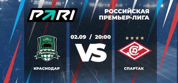 2 сентября «Краснодар» примет «Спартак» в центральном матче седьмого тура Российской Премьер-лиги. Встреча первой и седьмой команд РПЛ (по итогам шести туров) начнется в 20:00 по московскому времени. Букмекерская компания PARI проанализировала шансы соперников и рассказала о распределении ставок клиентов на исход воскресной игры.