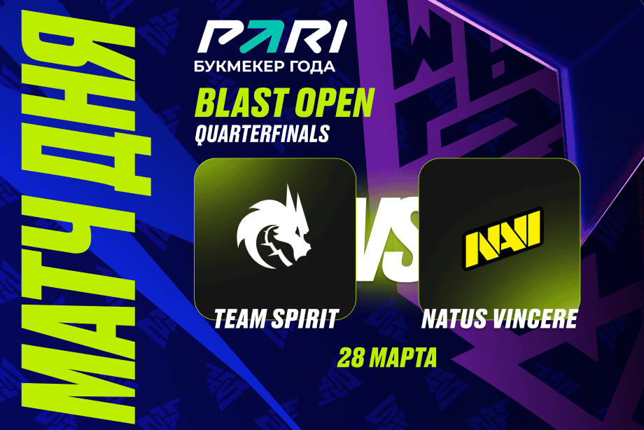 28 марта на турнире BLAST Open Spring 2025 по Counter-Strike 2 пройдут четвертьфинальные матчи. Центральным противостоянием дня станет встреча Team Spirit и Natus Vincere. Аналитики букмекерской компании PARI полагают, что ростер из СНГ — фаворит поединка. Серия в формате best-of-3 стартует в 21:30 по московскому времени.