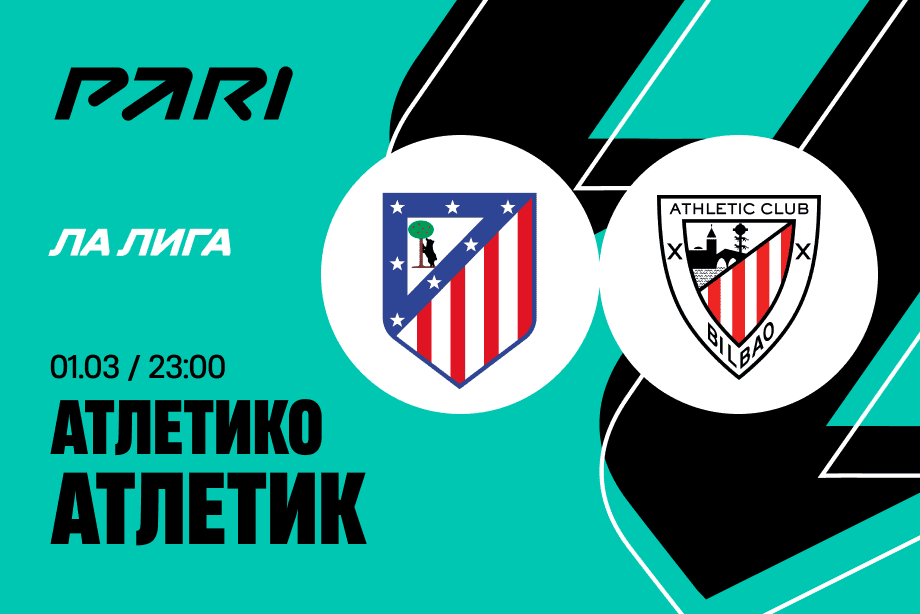 1 марта «Атлетико» и «Атлетик» встретятся в матче 26-го тура испанской Ла Лиги. Поединок пройдет в Мадриде и начнется в 23:00 по московскому времени. Аналитики букмекерской компании PARI оценили шансы команд и рассказали о ставках клиентов на игру.