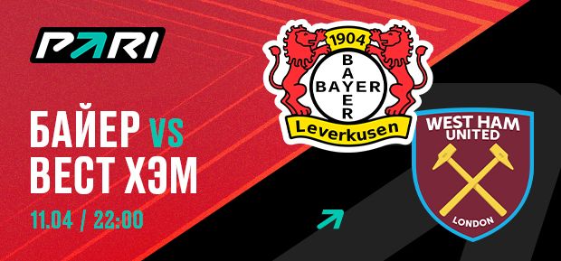 11 апреля «Байер» примет «Вест Хэм» в первом четвертьфинальном матче Лиги Европы. Встреча пройдет на стадионе «Бай-Арена» в Леверкузене и начнется в 22:00 по московскому времени. Букмекерская компания PARI оценила шансы соперников и рассказала, как распределились ставки на основных рынках.