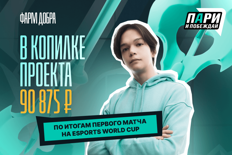 Проект «Фарм добра», запущенный благотворительным фондом «Пари и побеждай» и игроком состава PARIVISION Аланом Satanic Галлямовым, принес первые результаты. В стартовый день чемпионата Esports World Cup по Dota 2 17-летний киберспортсмен благодаря своей игре пополнил копилку проекта на 90 875 рублей.
