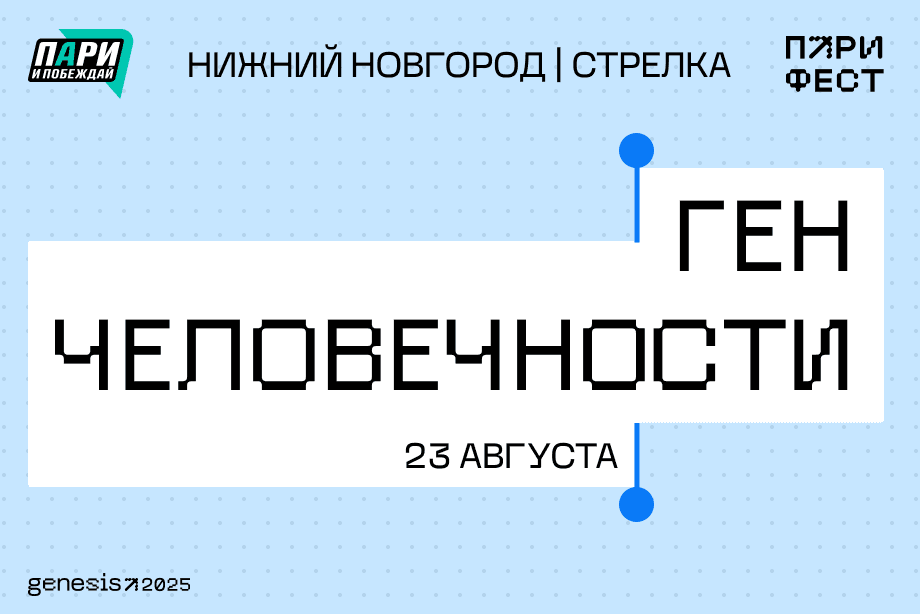 «ПАРИ ФЕСТ» возвращается 22–23 августа на нижегородскую Стрелку с новой концепцией «ГЕНЕЗИС». При поддержке PARI фестиваль объединит музыку, спорт и современные тренды для более чем 15 тыс. гостей. В программе: концерты, киберспорт, падел, паркур, арт и фуд-маркет.