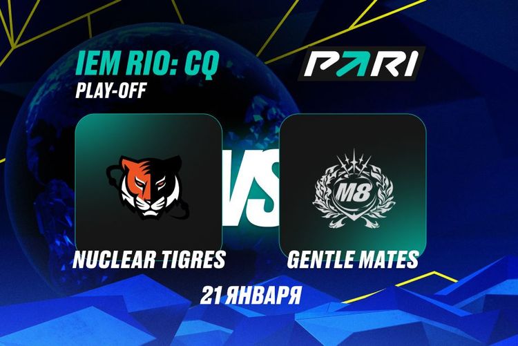 21 января стартует квалификация на Intel Extreme Masters Rio 2026 по Counter-Strike 2. В одном из матчей первого раунда плей-офф сойдутся Nuclear TigeRES и Gentle Mates. Серия в формате best-of-3 начнется в 13:00 по московскому времени. Букмекерская компания PARI проанализировала расклад сил перед игрой и изучила ставки клиентов на предстоящий матч.