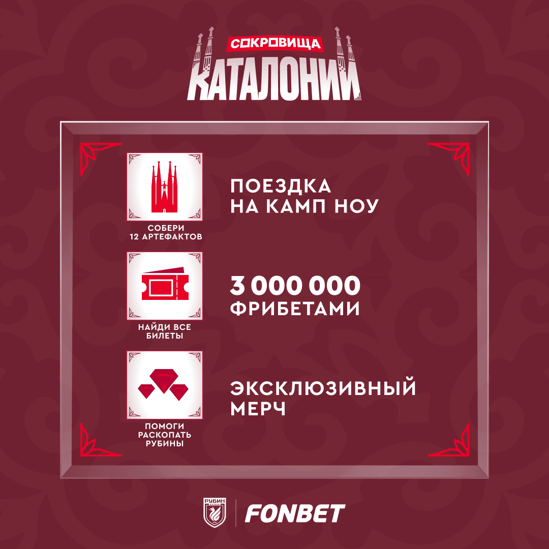 Цель игры “Сокровища Каталонии” – принять участие в раскопках на стадионе «Камп Ноу» и найти артефакты золотой эры “Рубина”. Лучшие игроки получат шанс посетить легендарный стадион летом 2025 года.