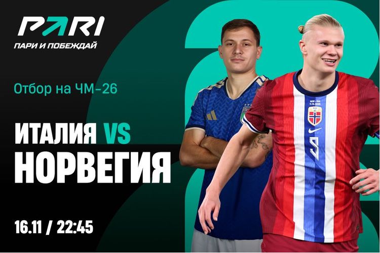 16 ноября сборные Италии и Норвегии встретятся в рамках отборочного турнира к чемпионату мира по футболу 2026 года. Игра пройдет на стадионе «Сан-Сиро» в Милане и стартует в 22:45 по московскому времени. Букмекерская компания PARI оценила шансы соперников и рассказала о ставках клиентов на предстоящую встречу.