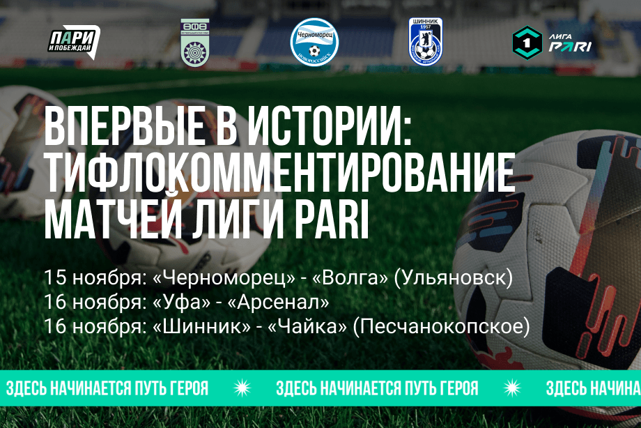 16 ноября в Уфе на матче «Уфа» — «Арсенал» в VK Видео будет запущена специальная трансляция с тифлокомментариями. Во время эфира видеоряд отключат, а экран станет черным. Так зрячие болельщики смогут представить, как воспринимают матч те, кто видит мир на слух. Трансляция будет доступна по ссылке в сообществе Лиги PARI.