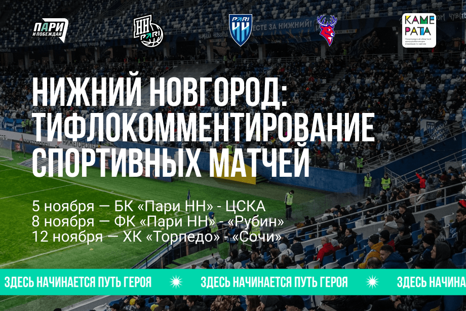 Тифлокомментирование станет постоянной опцией для незрячих болельщиков. Начиная с 8 ноября (футбольный матч «Пари НН» — «Рубин») и 12 ноября (хоккейный матч «Торпедо» — «Сочи») тифлокомментирование будет доступно на всех матчах по запросу нижегородских болельщиков с нарушениями зрения. В дальнейшем эта практика будет распространена и на другие города России.
