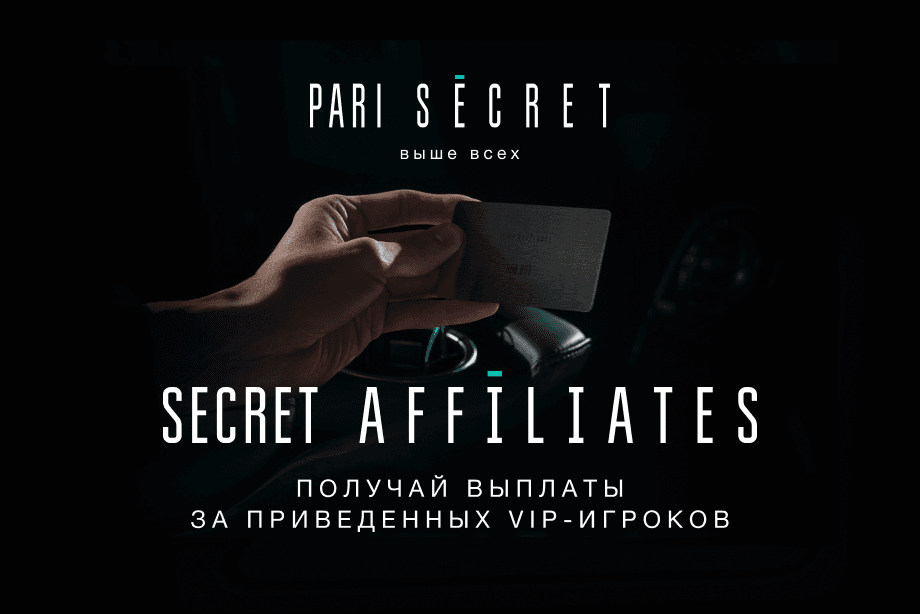 SECRET AFFILIATES создана для тех, кто готов приводить VIP-игроков и хочет зарабатывать на агентском вознаграждении. В рамках программы аффилиат получит 100 000 рублей за каждого приведенного игрока, а также 10% от его игры, а сам новый клиент — 100 000 рублей фрибетами.