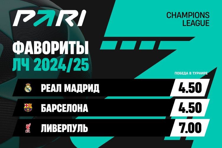 Основными претендентами на победу в Лиге чемпионов сезона-2024/25 аналитики PARI считают «Реал» и «Барселону». Поставить на триумф каждого из испанских топ-клубов можно по коэффициенту 4.50, шансы «сливочных» и «сине-гранатовых» пробиться в финал оцениваются котировкой 2.90, в полуфинал — 2.00.