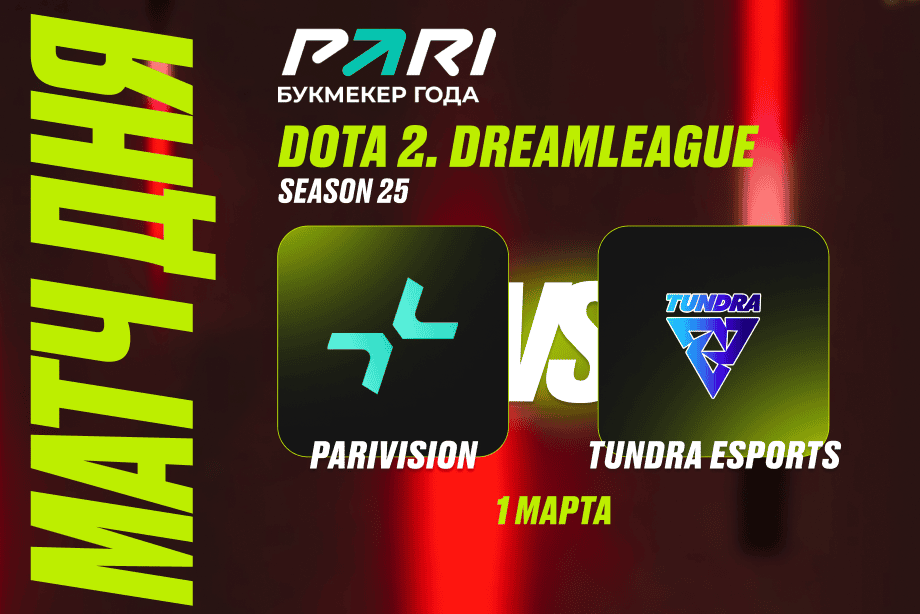 1 марта стартует заключительная стадия турнира DreamLeague Season 25 по Dota 2. В верхней сетке плей-офф сойдутся две лучшие команды ивента — PARIVISION и Tundra Esports. Аналитики букмекерской компании PARI полагают, что небольшое преимущество будет на стороне состава dyrachyo. Серия в формате best-of-3 стартует в 20:30 по московскому времени.