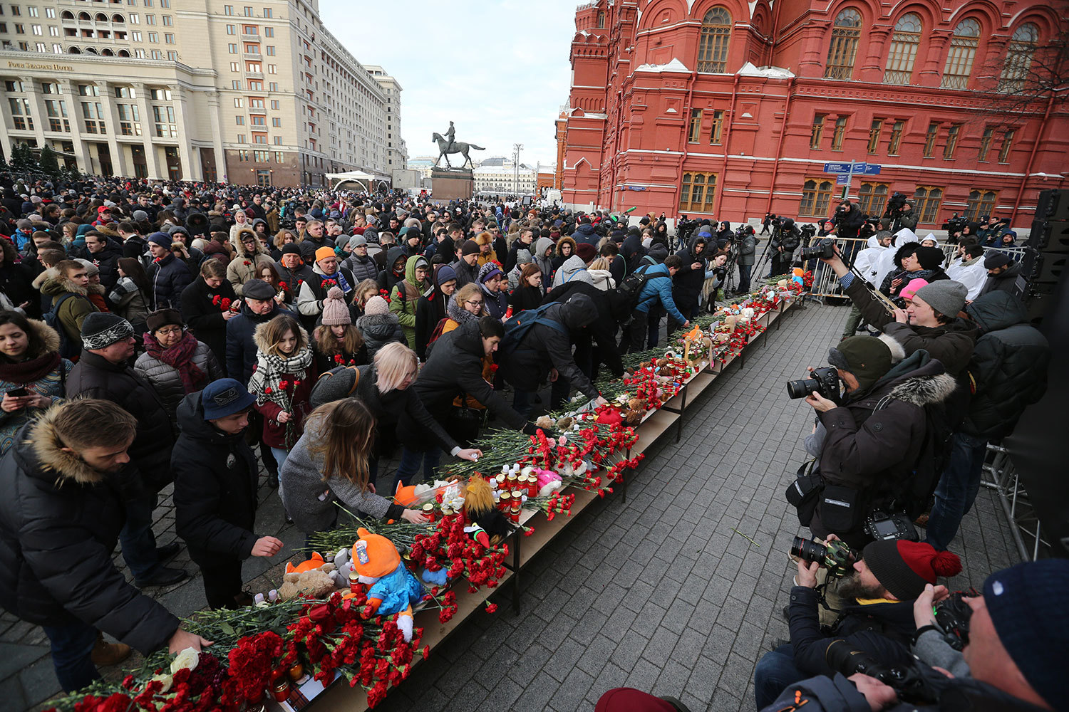 В Москве и Петербурге тысячи людей почтили память погибших в Кемерове