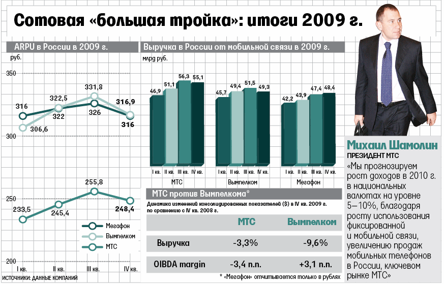 Рынок сотовой связи начинает восстанавливаться от кризиса. Однако в IV квартале 2009 г. из всей сотовой «большой тройки» выручка от мобильного бизнеса в России заметно выросла только у МТС