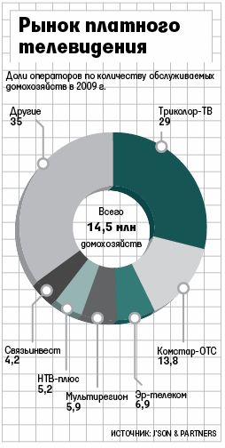 Несмотря на кризис, российский рынок платного телевидения вырос в 2009 г. на 6% до $830 млн, подсчитала J’son & Partners