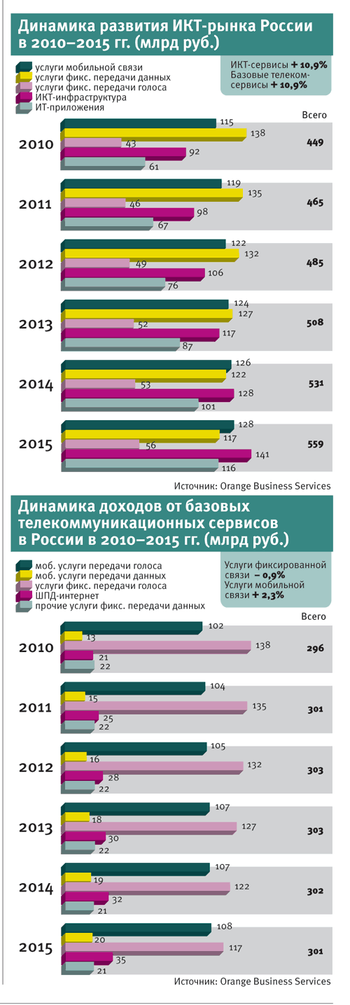 Я бы хотел поделиться тем, как мы, Orange Business Services, видим развитие рынка информационно-коммуникационных технологий (ИКТ) в России до 2015 г. Данные, на которые я буду опираться, взяты из различных отчетов российских и международных исследовательских компаний, таких как Garner, IDC и др., а также из собственных исследований France Telecom Orange Group, которые проводятся по специально разработанной методологии для прогнозирования развития интересующих рынков. Стоит отметить, что я рассматриваю только рынок B2B, так как Orange в России работает только на этом сегменте, и только рынок ИКТ, исключая перепродажу ПО и оборудования.