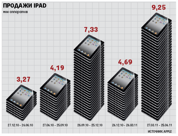 II квартал 2011 г. стал успешным и для Acer, выпустившей свой первый Android-планшет в апреле 2011 г.: по данным Canalys, его активно покупали в Германии, России и США. В России во II квартале продано 90 000 планшетов Acer, говорит руководитель ее российского офиса Глеб Мишин. Но платформа Android еще «незавершенная» и планшеты «однолики», поэтому у Apple серьезной конкуренции нет, уверен ведущий аналитик Mobile Research Group Эльдар Муртазин.
