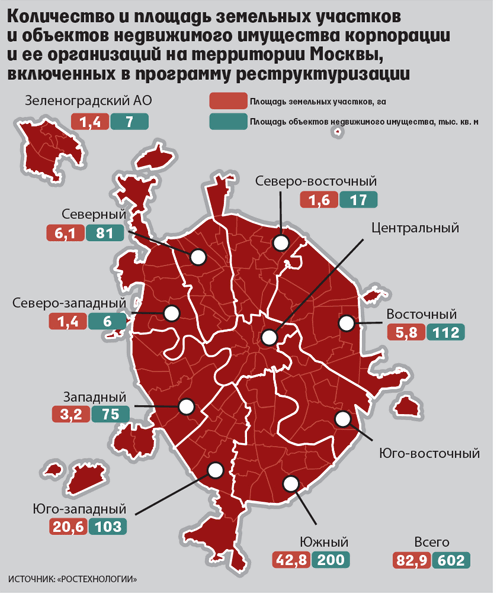 Из материалов госкорпорации следует, что 100 объектов на 12 га будет «задействовано в инвестиционных программах (новое строительство, новое производство)», а остальное «отчуждено» – вероятно, распродано.