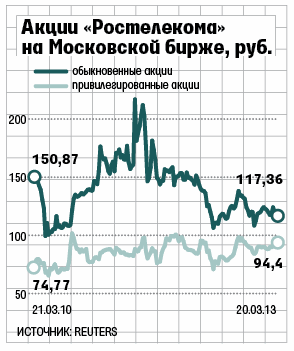 Если совет утвердит оценку Ernst & Young для целей выкупа, то фактически это будет означать начало «скупки обыкновенных акций с рынка», убеждена старший аналитик БКС Анна Курбатова. Согласно российскому законодательству, размер средств, направляемых на выкуп акций у несогласных миноритариев, не может превышать 10% от стоимости чистых активов компании. По словам директора департамента «Ростелекома» по работе с инвесторами Марии Елисеевой, на конец сентября 2012 г. 10% от суммы чистых активов составили примерно 29,4 млрд руб. По предположениям Курбатовой, инвесторы могут предъявить к выкупу префов примерно на 9 млрд руб. На остальные 20 млрд руб. компания в этом случае скорее всего купит обыкновенные акции – т. е. «Ростелеком» аккумулирует до 6% своих обыкновенных акций.