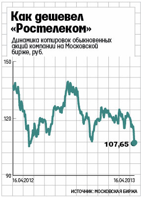 Вчера акции «Ростелекома» подешевели на 4,9% до 107,65 руб. на закрытие торгов. Даже в декабре, когда, как считали эксперты, шла игра на понижение котировок «Ростелекома», чтобы вызвать margin call по кредитам, взятым кем-то из акционеров, было 108 руб. Тогда думали, что атака идет на фонд «Маршал капитал» Константина Малофеева, владевший примерно 10% «Ростелекома», купленными на кредит Газпромбанка. Дешевле акции «Ростелекома» стоили последний раз в мае 2012 г. – 105,44 руб., тогда эксперты говорили о распродаже акций, остававшихся у Сулеймана Керимова.