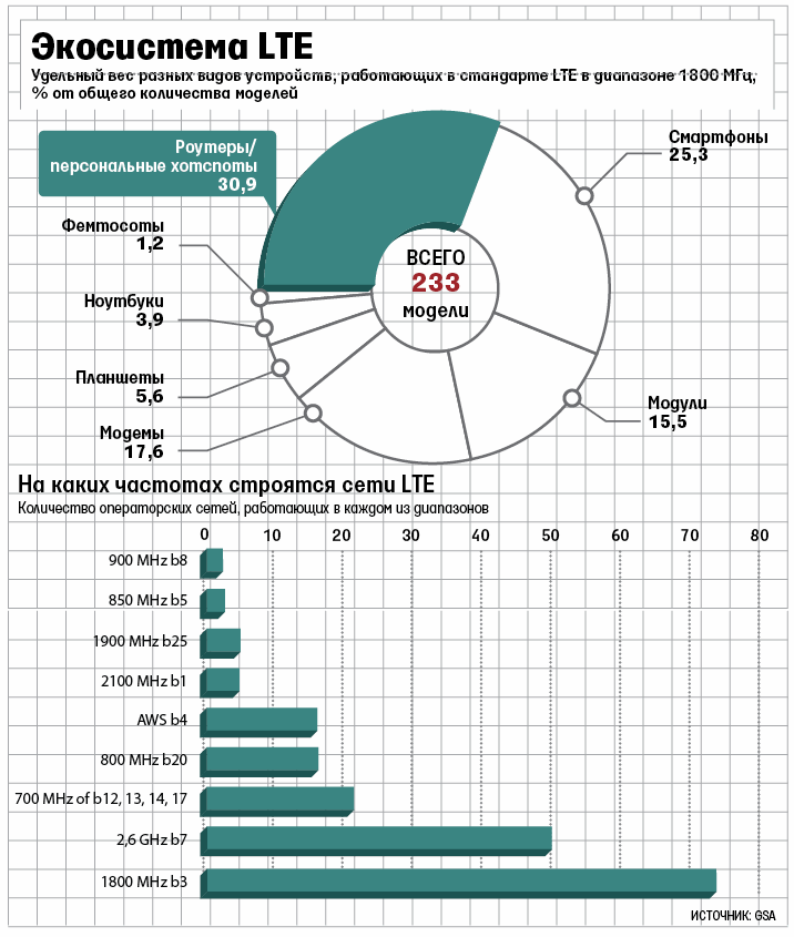 Диапазон 1800 МГц удобен для сетей LTE по многим причинам, говорится в исследовании GSA: площадь покрытия одной базовой станции LTE-1800 вдвое выше, чем если используется диапазон 2,5–2,7 ГГц; есть возможность использовать часть существующего оборудования GSM и 3G; кроме того, у операторов в этом диапазоне, как правило, достаточно частот, чтобы запустить полноценные услуги LTE.