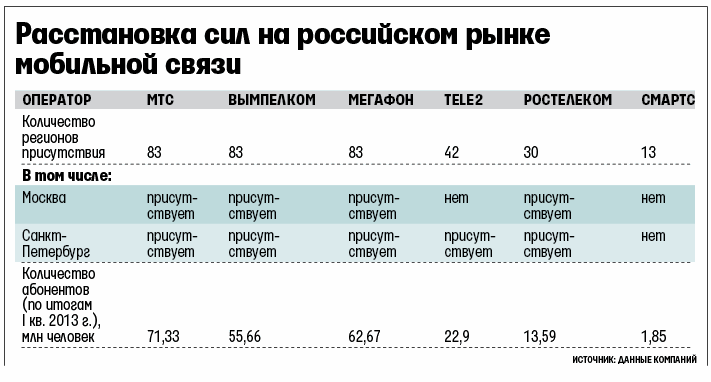 Информацию о переговорах со СМАРТС Соловьев вчера комментировать отказался, заявив, что пока все это «теоретические дискуссии, а банк смотрит на все возможности [развития своего актива]». Близкий к ВТБ источник уверяет, что никаких переговоров банк ни с кем пока не ведет. Основатель СМАРТС Геннадий Кирюшин тоже утверждает, что в последние месяцы к нему никто не обращался с предложениями о покупке компании, хотя вплоть до конца 2012 г. продолжались переговоры с Tele2. «Идея объединения СМАРТС и Tele2 витала в воздухе с 2004 г., учитывая, что эти два оператора практически не пересекаются по регионам, – напоминает он. – Сначала мы предлагали купить Tele2, потом было предложение от них».