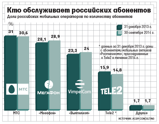 Абоненты «Мегафона» более активно пользуются мобильным интернетом - в структуре его доходов эта услуга составляет 26% против 23% у МТС и 17% у «Вымпелкома», говорит управляющий партнер «ТМТ-консалтинга» Константин Анкилов. Соответственно, абоненты «Мегафона» могли быть более склонны к использованию мессенджеров и соцсетей для обмена сообщениями, в том числе и новогодними поздравлениями, замечает он. При этом в 2014 г. лидерами роста по абонентской базе и по доходам от сотовой связи были МТС и «Мегафон», а вот у «Вымпелкома» по итогам года скорее количество абонентов уменьшится, прогнозирует Анкилов.