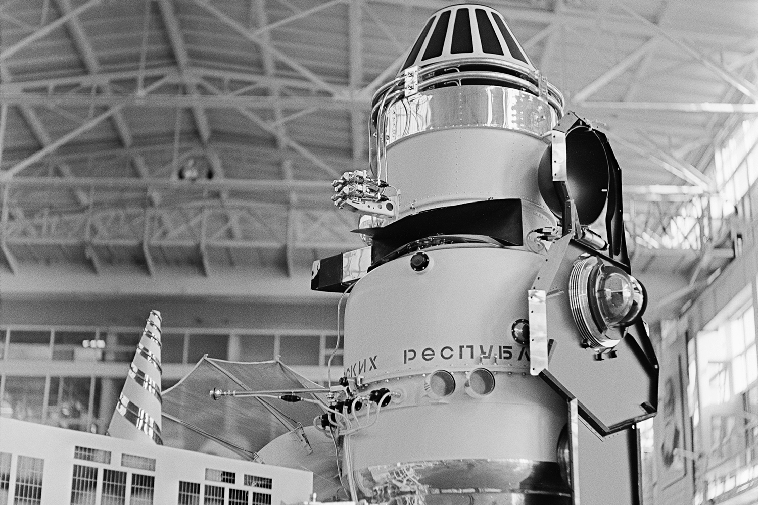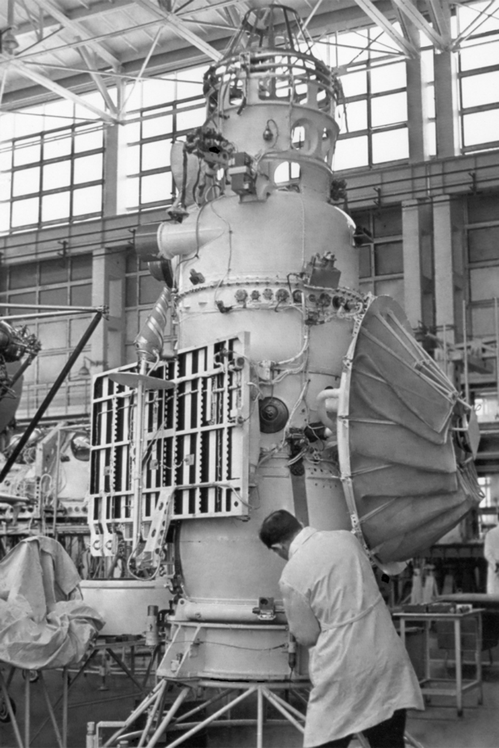 На фото: межпланетная автоматическая станция «Венера-7» в монтажно-испытательном корпусе, 1970 г.
